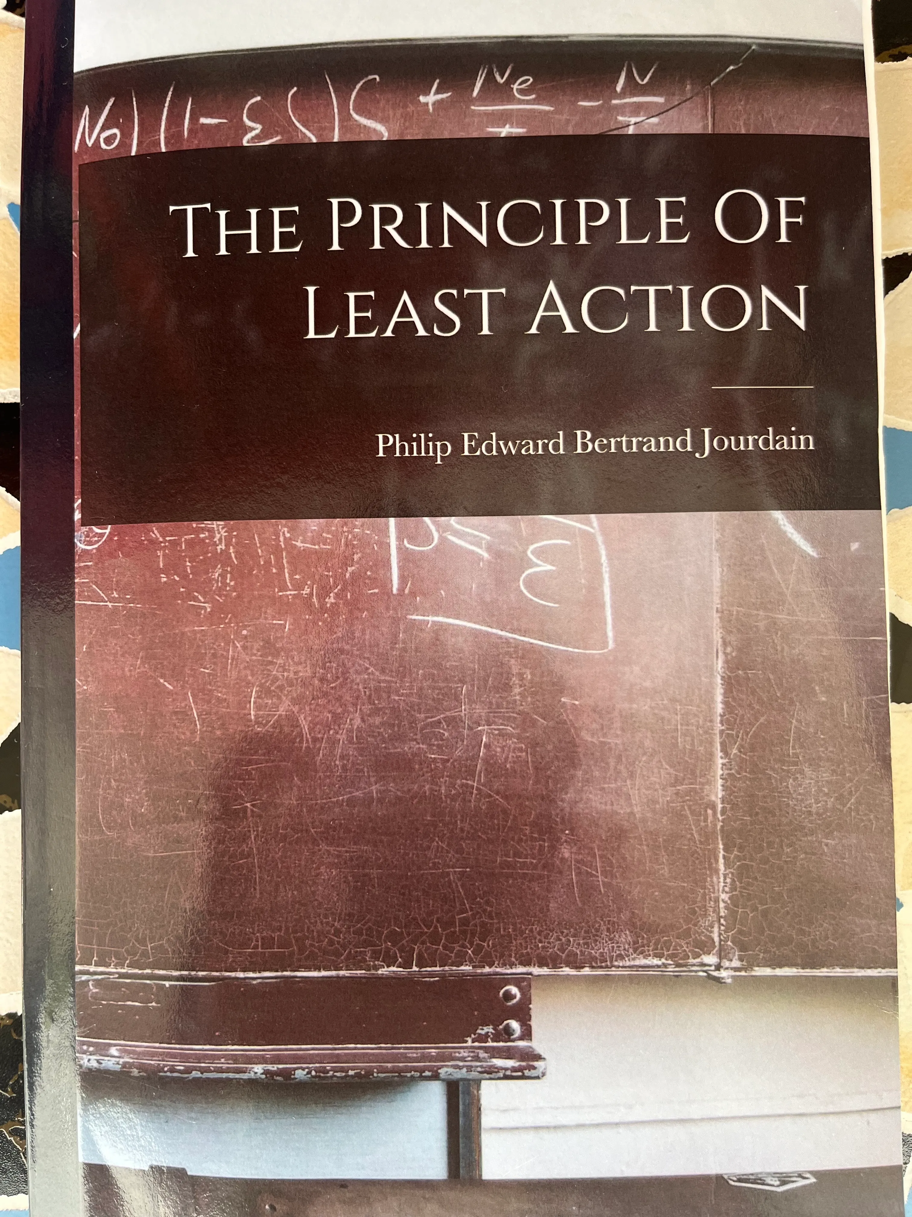 I lost my annotated copy of Jourdain’s book while on vacation. While searching for the book online, I came across another book that I haven’t read yet, but will soon: The Principle of Least Action: History and Physics by Alberto Rojo and Anthony Bloch.